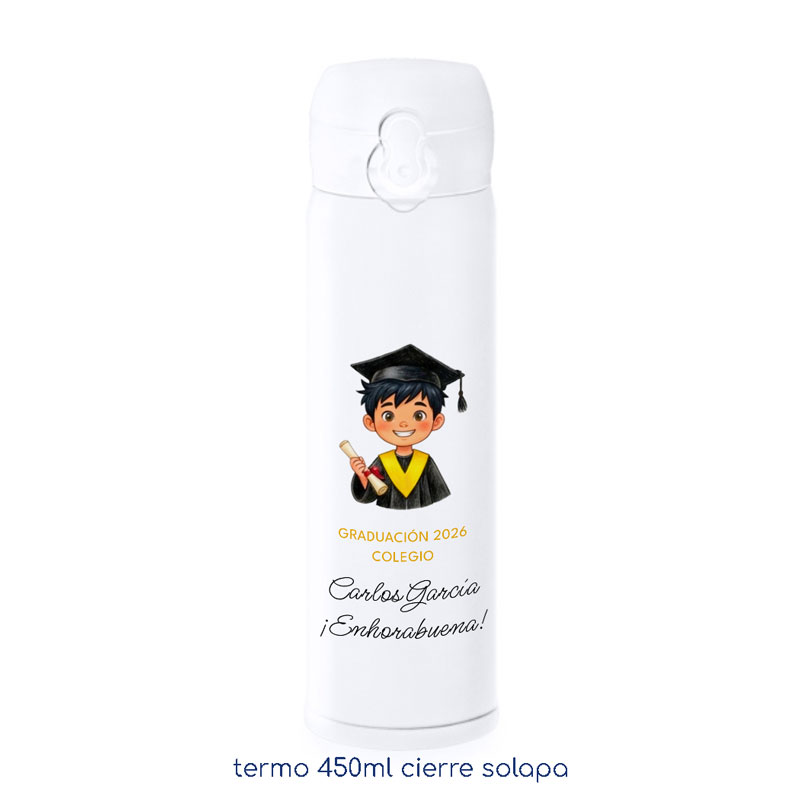 Botella/termo Escolar Personalizado, de alta calidad diseñada para conservar uno de los recuerdos más especiales.